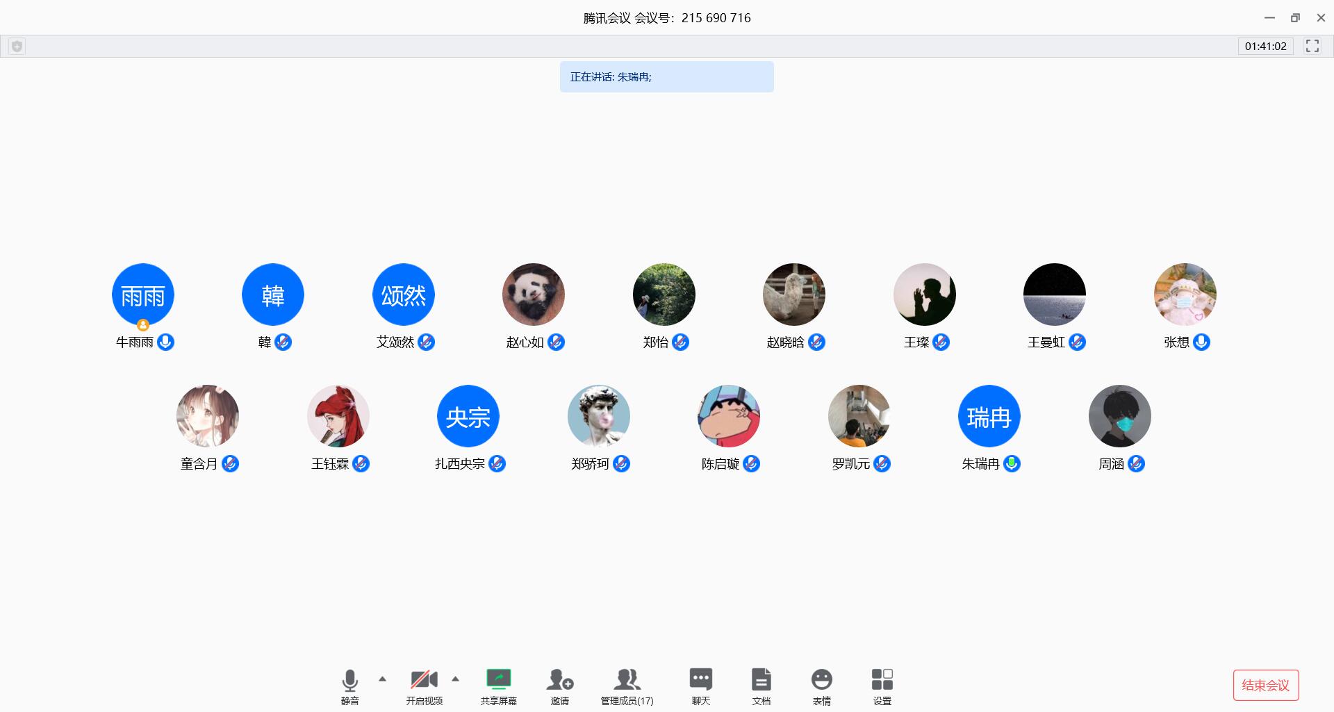 上午9点,会议准时开始。朱瑞冉首先和同学们谈论了一下各自所在地目前的疫情状况,并嘱咐大家继续保持警惕,关注身体健康。接着,牛雨雨介绍了一下此次会议的流程和目的。会议第一阶段,各个班委总结了自己在家上课期间所进行的工作以及未来的工作计划。同时,赵晓晗被任为班级的心理委员。会议第二阶段,同学们交流分享自己在家期间的日常生活和学习。有的同学提到自己现在的健康规律作息,有的同学讲述了自己正在自学的技能如犀牛,C++等,还有的同学分享了自己生活中遇到的趣事。通过了解一些同学的积极上进的生活方式,可以激发其他同学的学习劲头。最后,团支书张想叮嘱同学们按时完成青年大学习。