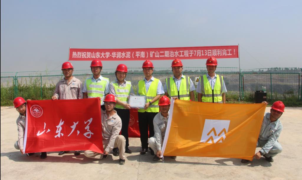课题组在广西华润致力于解决国内凹陷式矿山突涌水世界级难题。以抓党建为突破口,充分发挥临时党支部的战斗堡垒作用,发挥党员的模范带头作用,全力拼搏,攻坚克难,解决了长期困扰华润水泥(平南)公司矿山的岩溶灾害的世界级难题,总减水量达200000m³/d,保证了华润水泥(平南)有限公司矿山的正常安全生产,带来了巨大的经济效益。